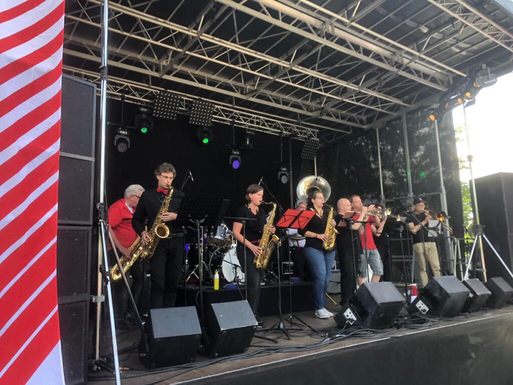 Funky pop liedjes in een brassband (new Orleans bezetting) jasje