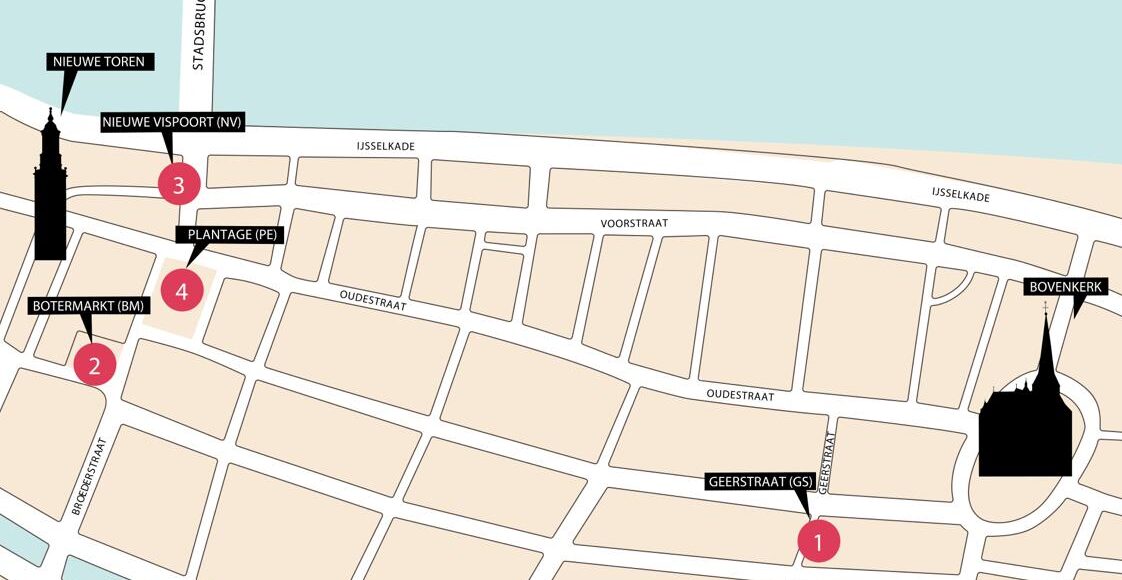 De podia zijn verdeeld langs de IJsselkade van de historische stad Kampen en kun je vinden bij: